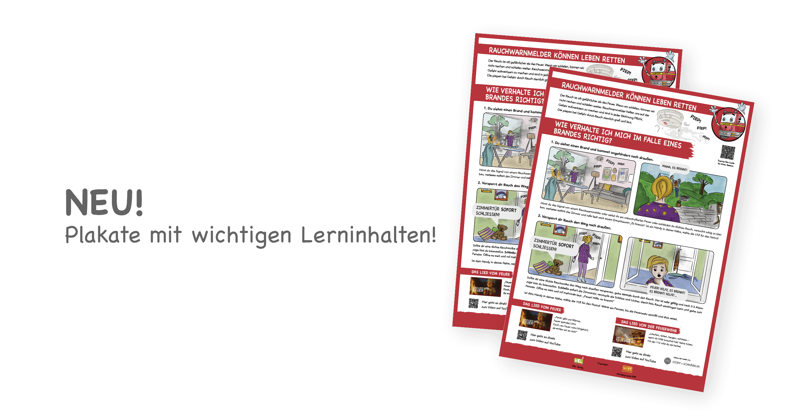 Außer den Arbeitsheften gibt es Lehrerheften und „Kinderfinderaufkleber“ für Fenster oder Türen der Kinderzimmer, damit Drehleiterbesatzungen und Einsatzkräfte im Ernstfall sofort erkennen, wo unter Umständen ein hilfloses Kind im Qualm liegen könnte.„Ausmalbilder, erklärende Texte, QR-Codes für weiterführende Informationen und Videos sorgen für eine abwechslungsreiche Handhabung“, so der im Verband für Brandschutzerziehung zuständige Frank Kadel.